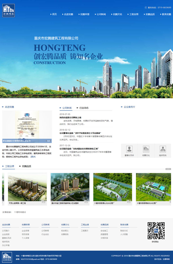 東郡網(wǎng)絡(luò)2018年7月建設(shè)完成重慶宏騰建筑網(wǎng)站項目