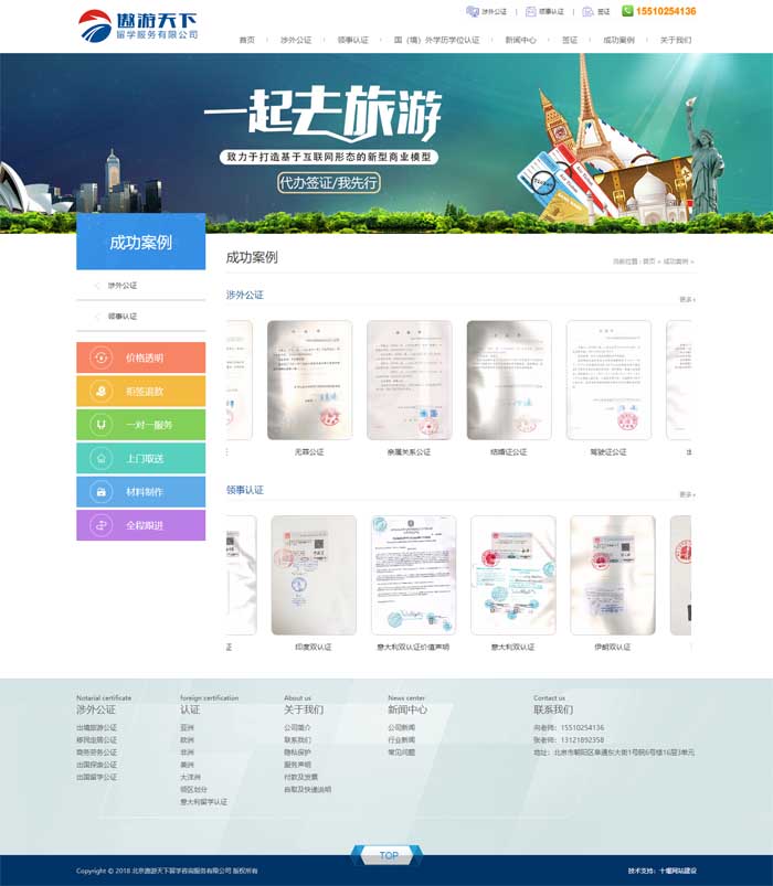發布者:東郡網絡 時間:2018-11-15 00:00:00北京遨游天下留學咨詢服務有限公司致力于打造中國互聯網公證認證平臺,服務于公證認證(商務勞務公證咨詢、移民公證咨詢、留學公證咨詢、旅游公證咨詢、疑難公證咨詢、國內商業公證咨詢)一系列業務,每年為超過20萬出國人士提供各類出國公證、認證、簽證服務。業務國家涵蓋亞洲、美洲、歐洲、非洲及大洋洲的100多個國家或地區。
